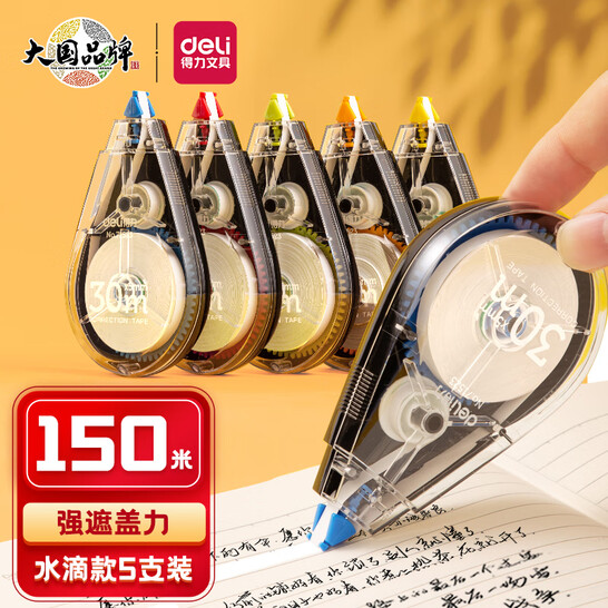 得力(deli)150m大容量学生修正带 顺滑不断带涂改带/强遮盖力改正带 71523